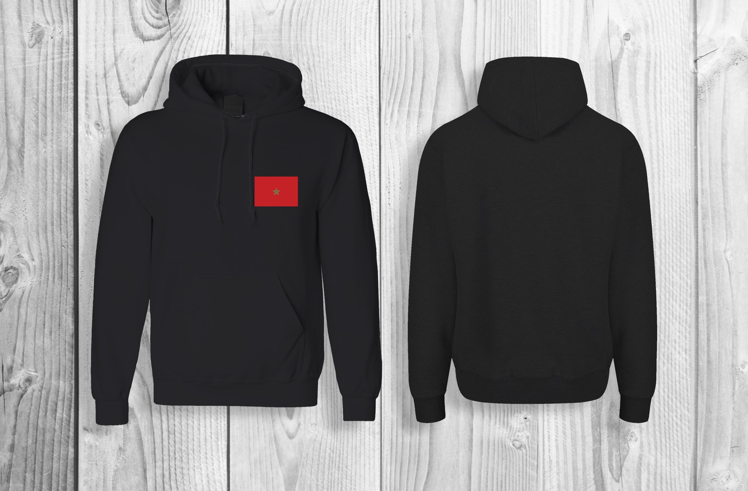 Comfortabele hoodie met een duidelijke print van de Marokkaanse vlag op de voorkant — ideaal voor wie zijn Marokkaanse trots op een stijlvolle manier wil laten zien.